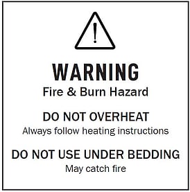 Not recommended for people who may have reduced awareness of temperature or feeling in their skin, eg. Diabetics, people with nerve damage, or people with impairment that prevents them recognising they may be burnt. It is important to carefully follow these instructions as overheating or inappropriate use may result in injury or fire.